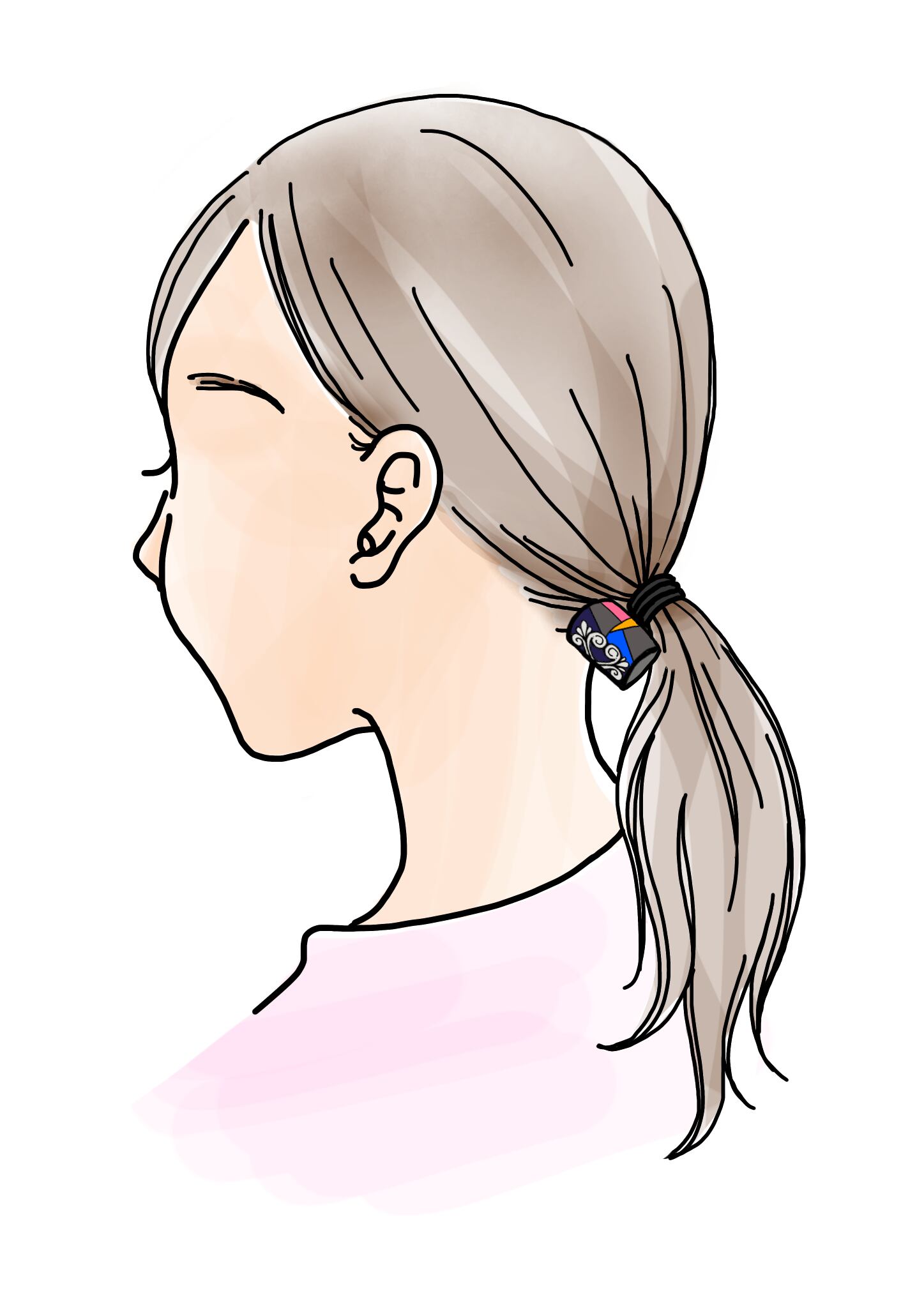 ※先に、一度髪を別のゴム結んでからつけると、きれいにおさまります。
